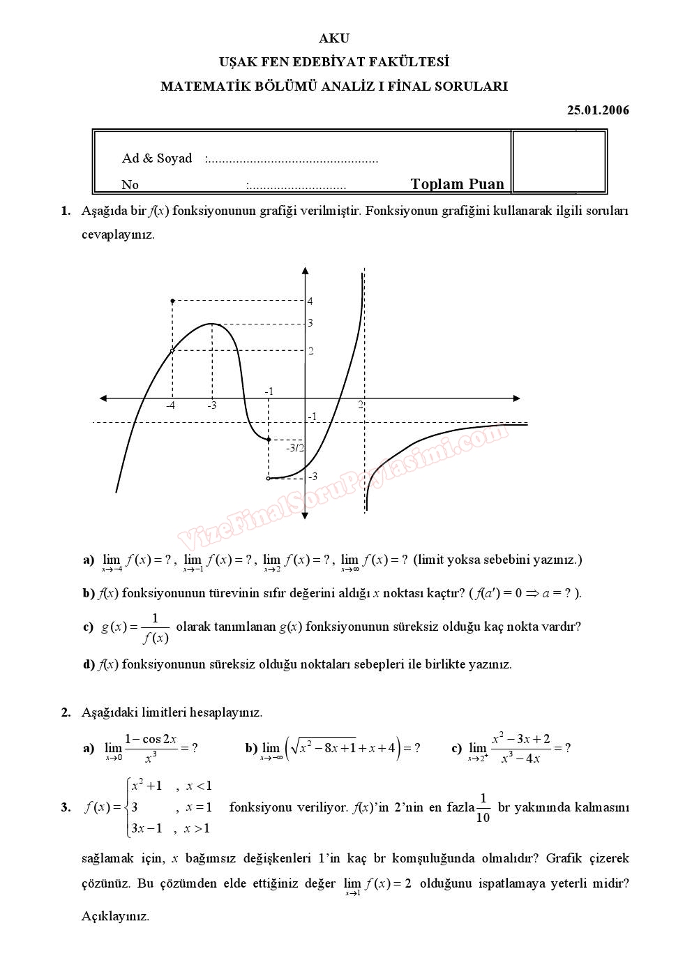 analiz1 final soruları Uşak Üniversitesi GERİ DÖN-