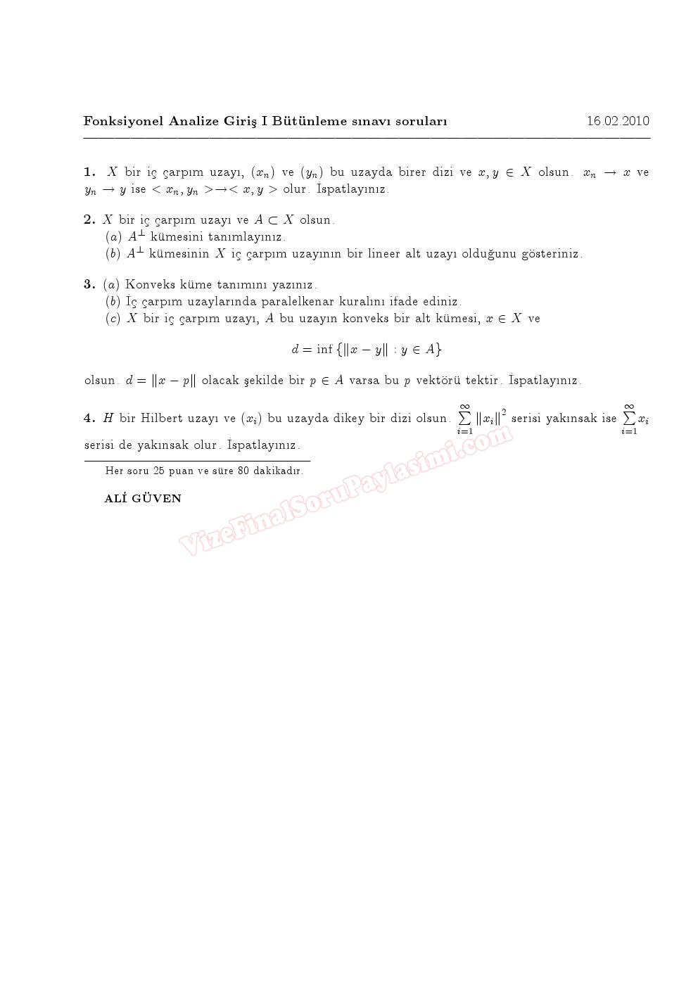 Vize ve Final Soruları / Pamukkale Üniversitesi / Fonksiyonel Analize Giriş -1