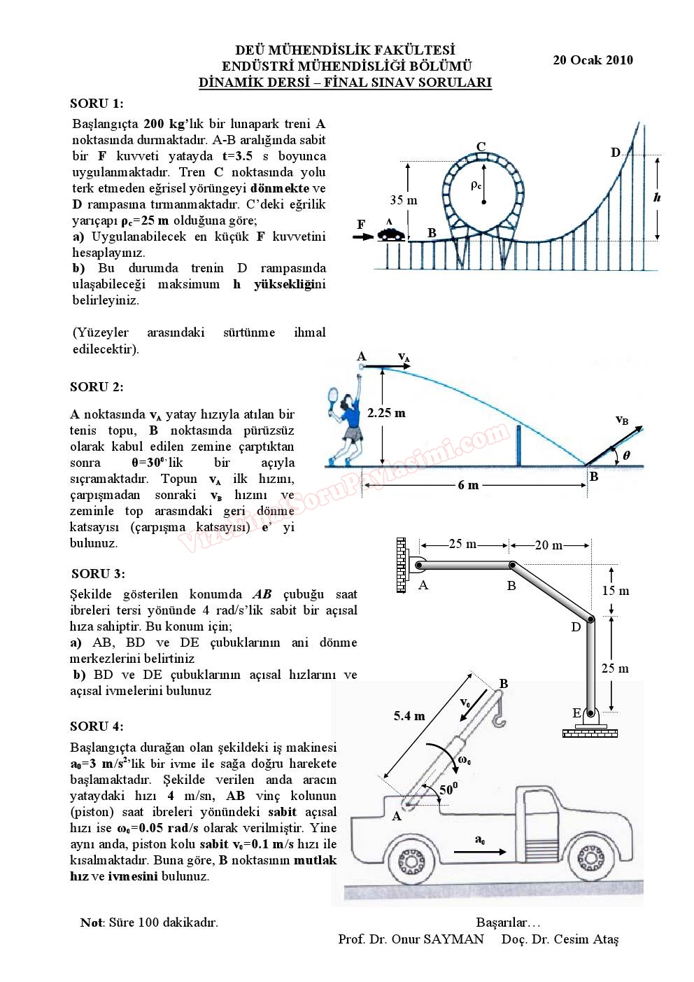 Vize ve Final Soruları / Dokuz Eylül Üniversitesi / Dinamik Dersi