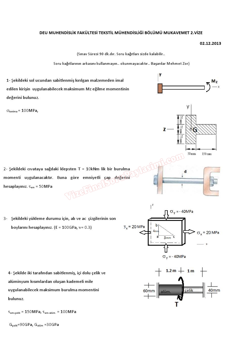 Mukavemet 1 Vize Soru ve Cevapları 2013