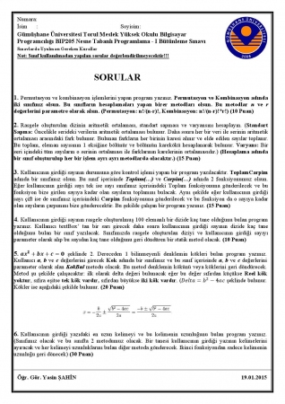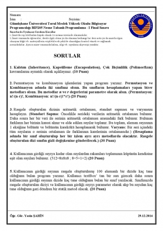 Vize ve Final Soruları / Gümüşhane Üniversitesi / Nesne Tabanlı Programlama –2