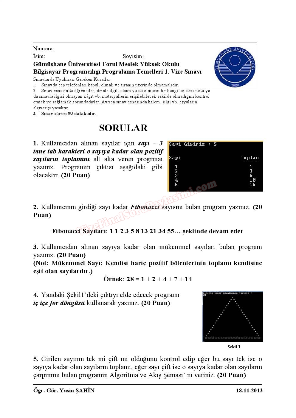 Vize ve Final Soruları / Gümüşhane Üniversitesi / Programlama Temelleri Dersi