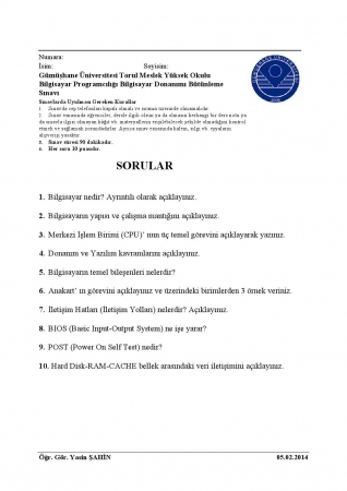 sensörler Bütünleme Soruları Gümüşhane Üniversitesi