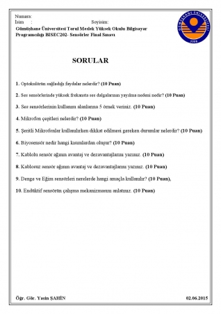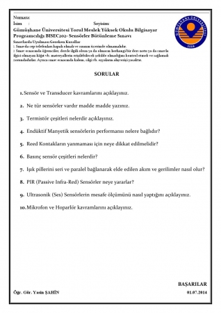 Vize ve Final Soruları / Gümüşhane Üniversitesi / Sensörler Dersi