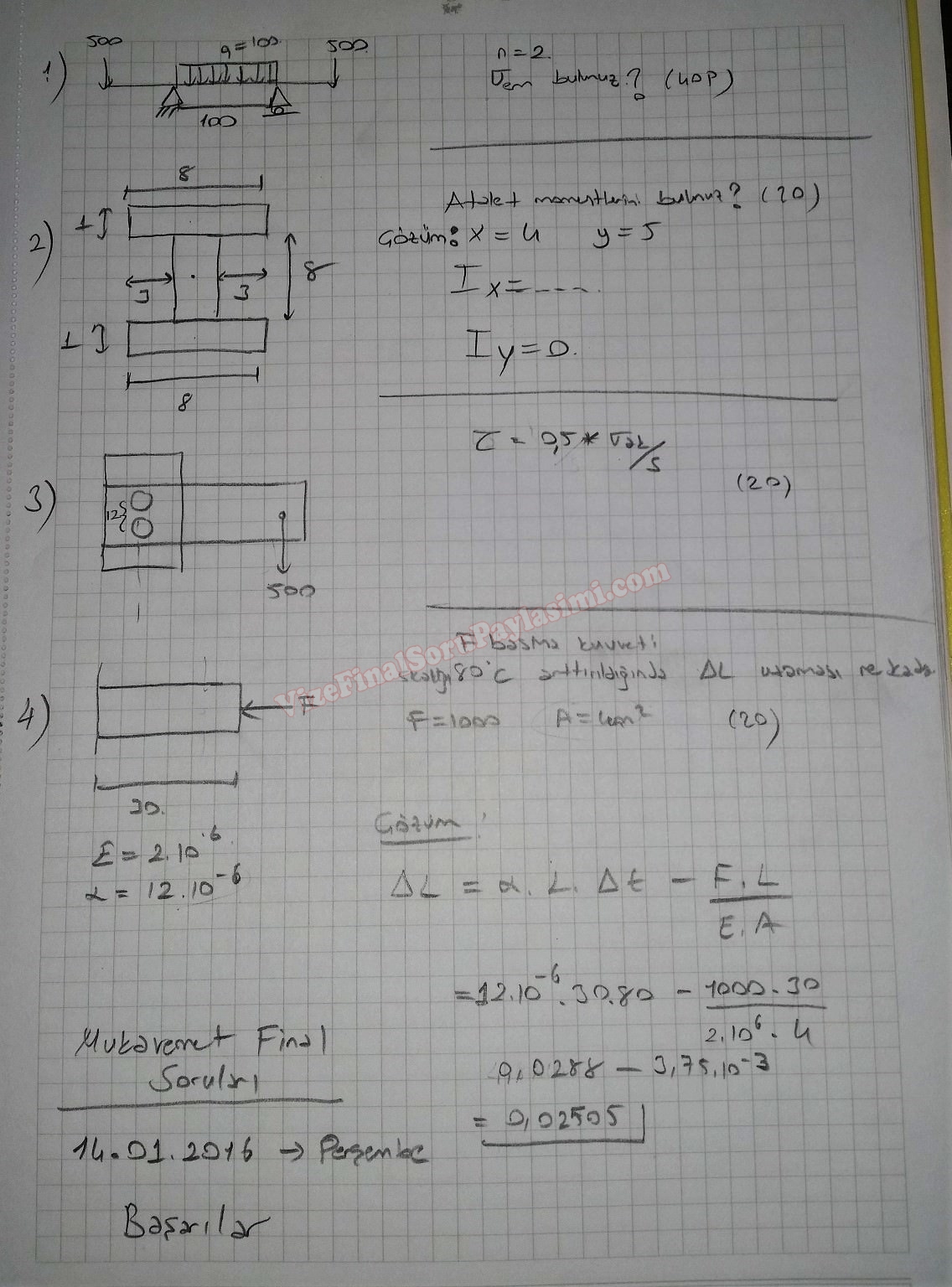 Mukavemet 1 Final Soru ve Cevapları 14-01-2016, 00:13