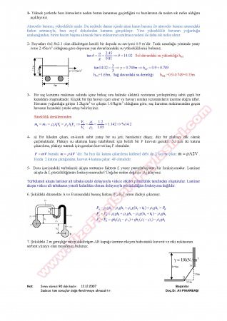 Akışkanlar Mekaniği Final Soruları 19.01.2007