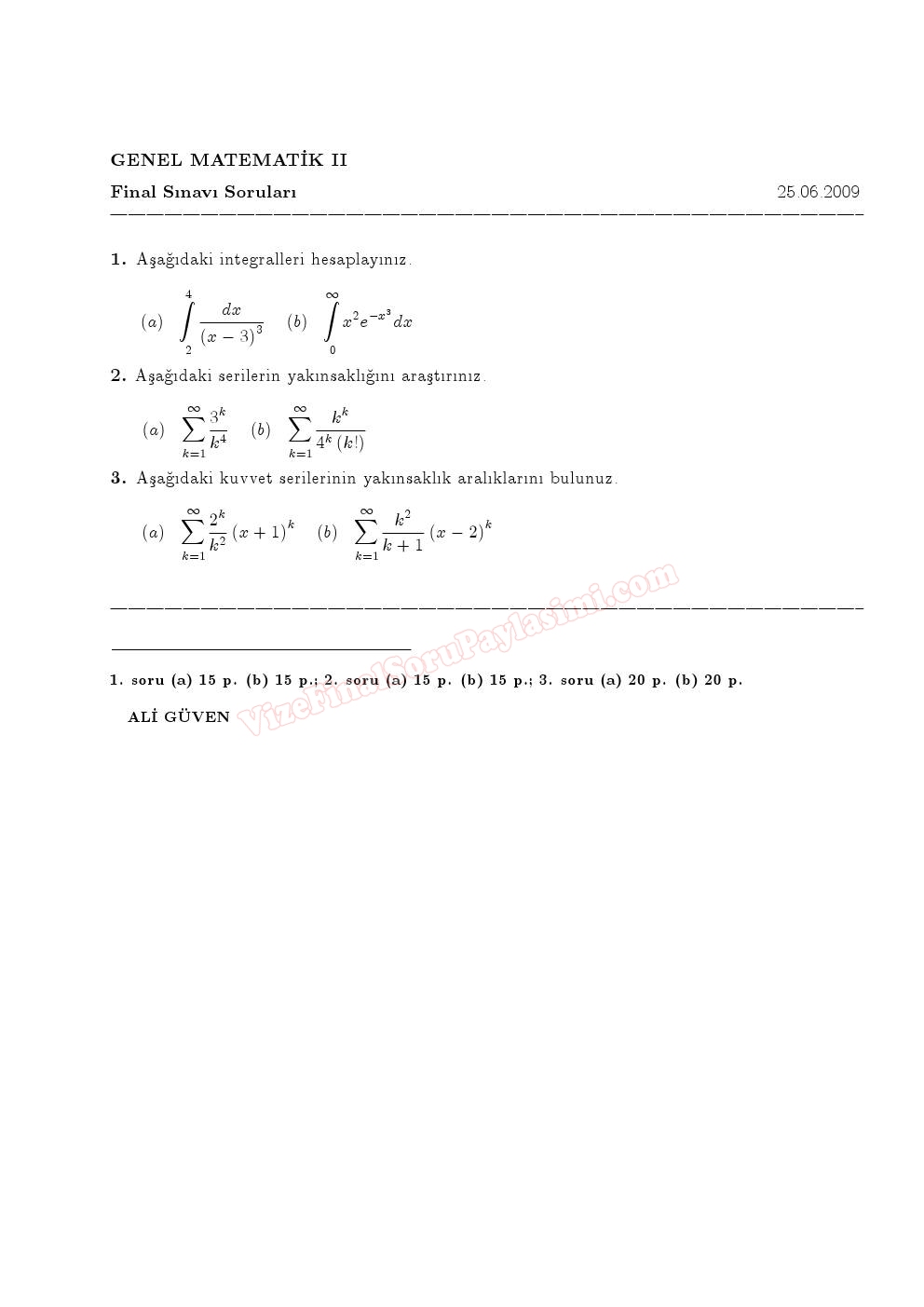 Genel Matematik-2 Bütünleme Soruları 2009 17-01-2016, 05:22