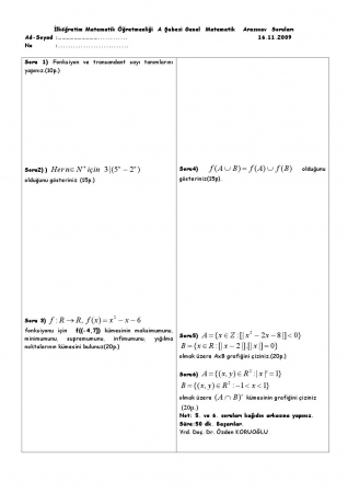 Genel Matematik Vize Soruları 2009 23-12-2015, 17:26