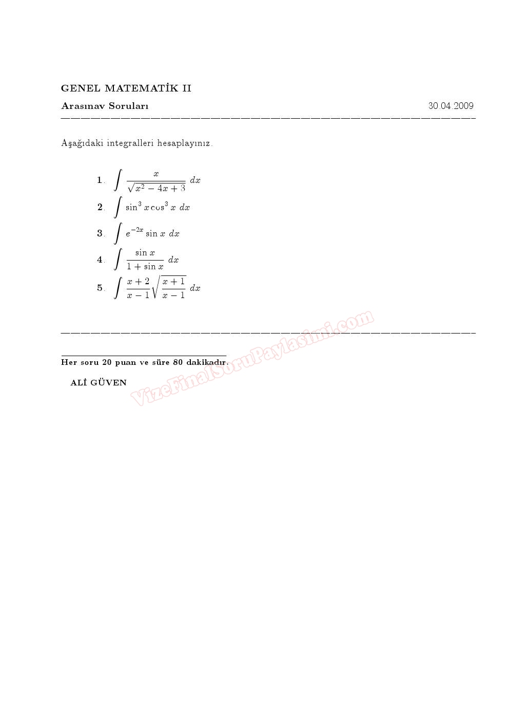 Genel Matematik-2 Final Soruları 2009 17-01-2016, 05:25