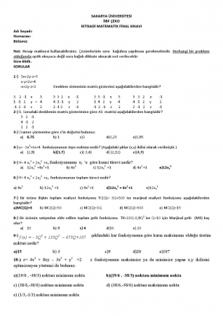 İktisadi Matematik Final Soruları 9-01-2016, 15:24