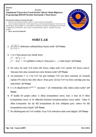 Ticari Matematik Dersi Final Soruları 2015 14-01-2016, 05:51