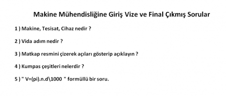 Makine Mühendisliğine Giriş Vize Final Soruları 24-12-2015, 16:05