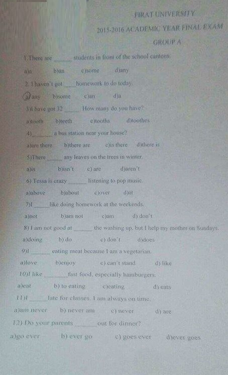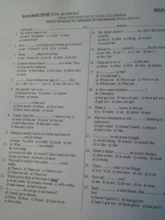 İngilizce -1 İngilizce Dersi Final Soruları 2015 2016 Fırat Üniversitesi GERİ DÖN-
