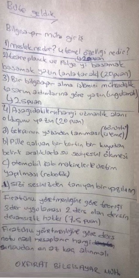 Vize ve Final Soruları / Fırat Üniversitesi / Bilgisayar Mühendisliğine Giriş