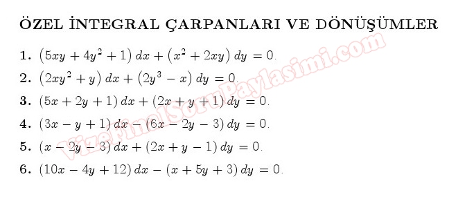 Özel İntegral Çarpanları Dönüşümler Çalışma Soruları Diferansiyel Denklemler