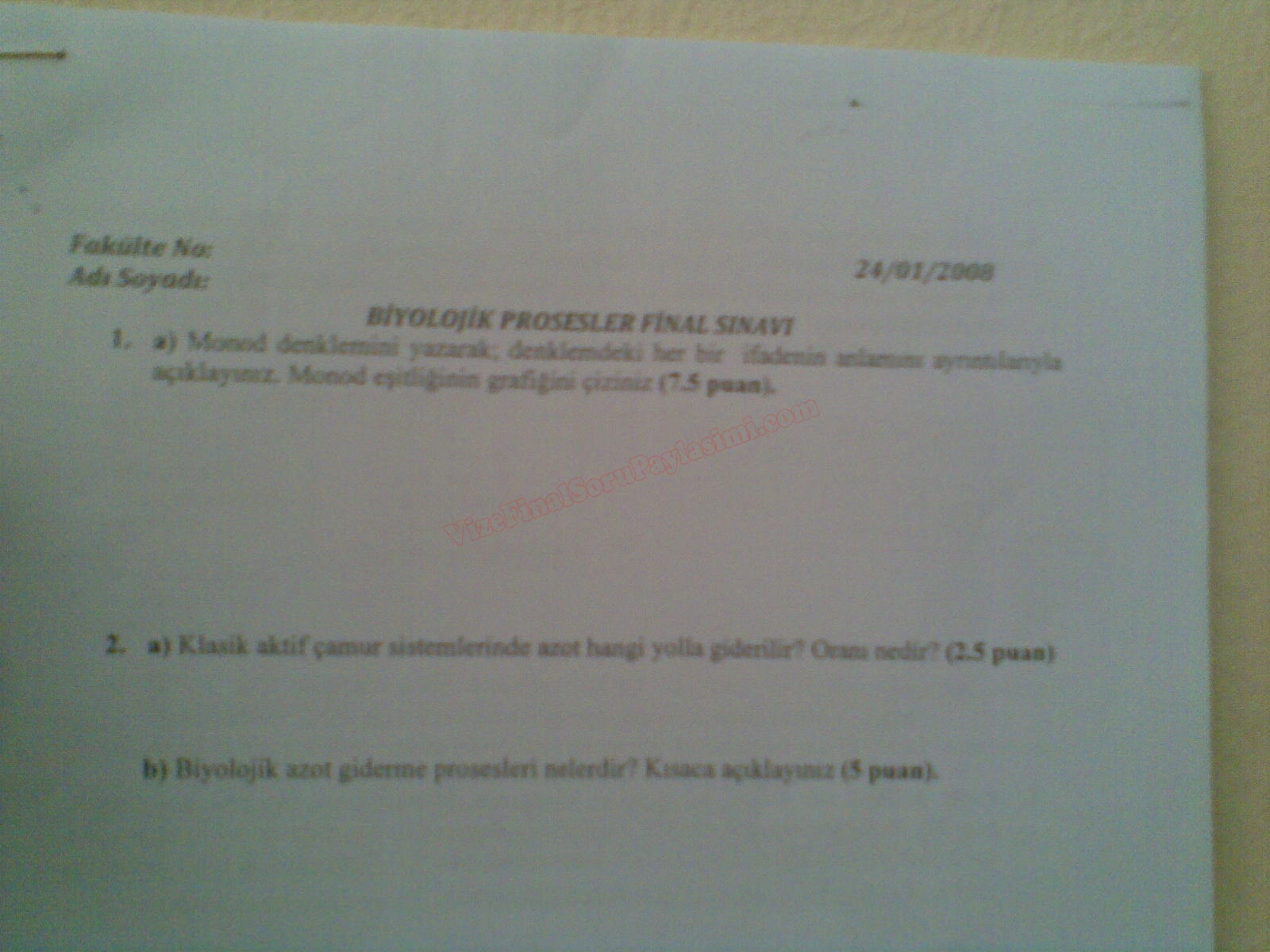 Vize ve Final Soruları / İstanbul Üniversitesi / Biyolojik Prosesler