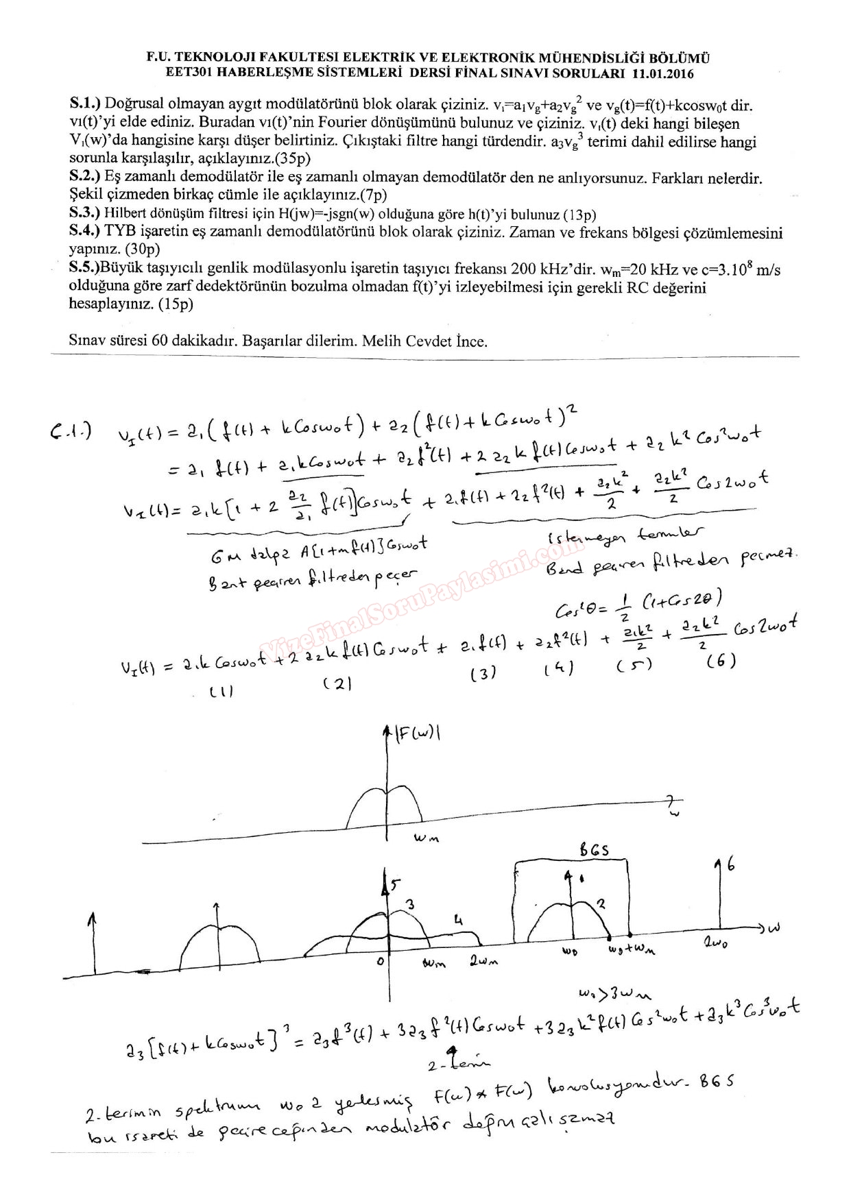 Haberleşme Sistemleri Dersi Bütünleme Soruları ve Cevapları 27-04-2016, 13:45