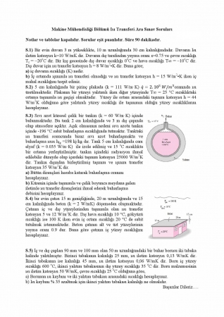Vize ve Final Soruları / Bülent Ecevit Üniversitesi / Isı Transferi Dersi