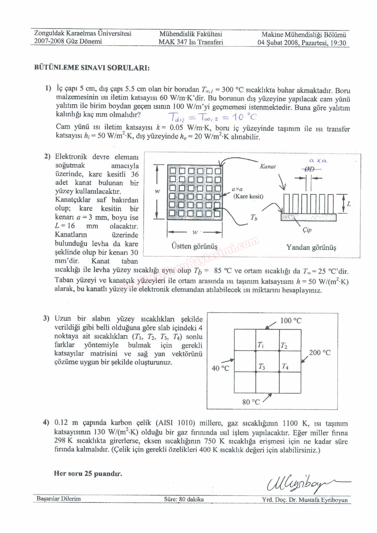 Isı Transferi Dersi Final Soruları 23-07-2014, 09:18