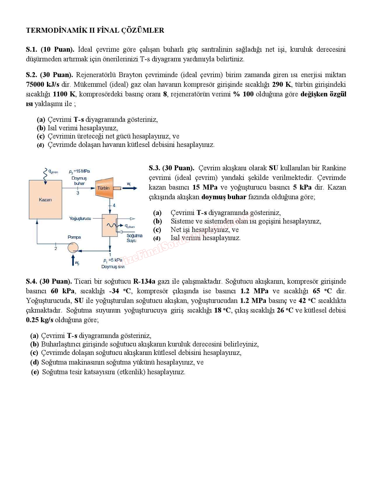 termodinamik-2 Final Soruları Çözümleri Cevaplari 2015 Sakarya Üniversitesi GERİ DÖN-