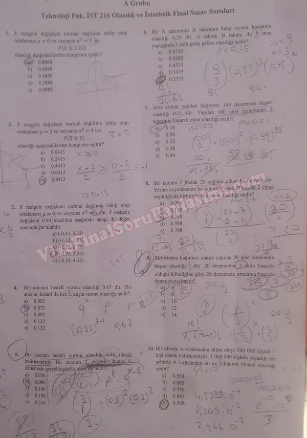 İstatistik ve Olasılık Final Soruları ve Cevapları 11-11-2015, 15:04