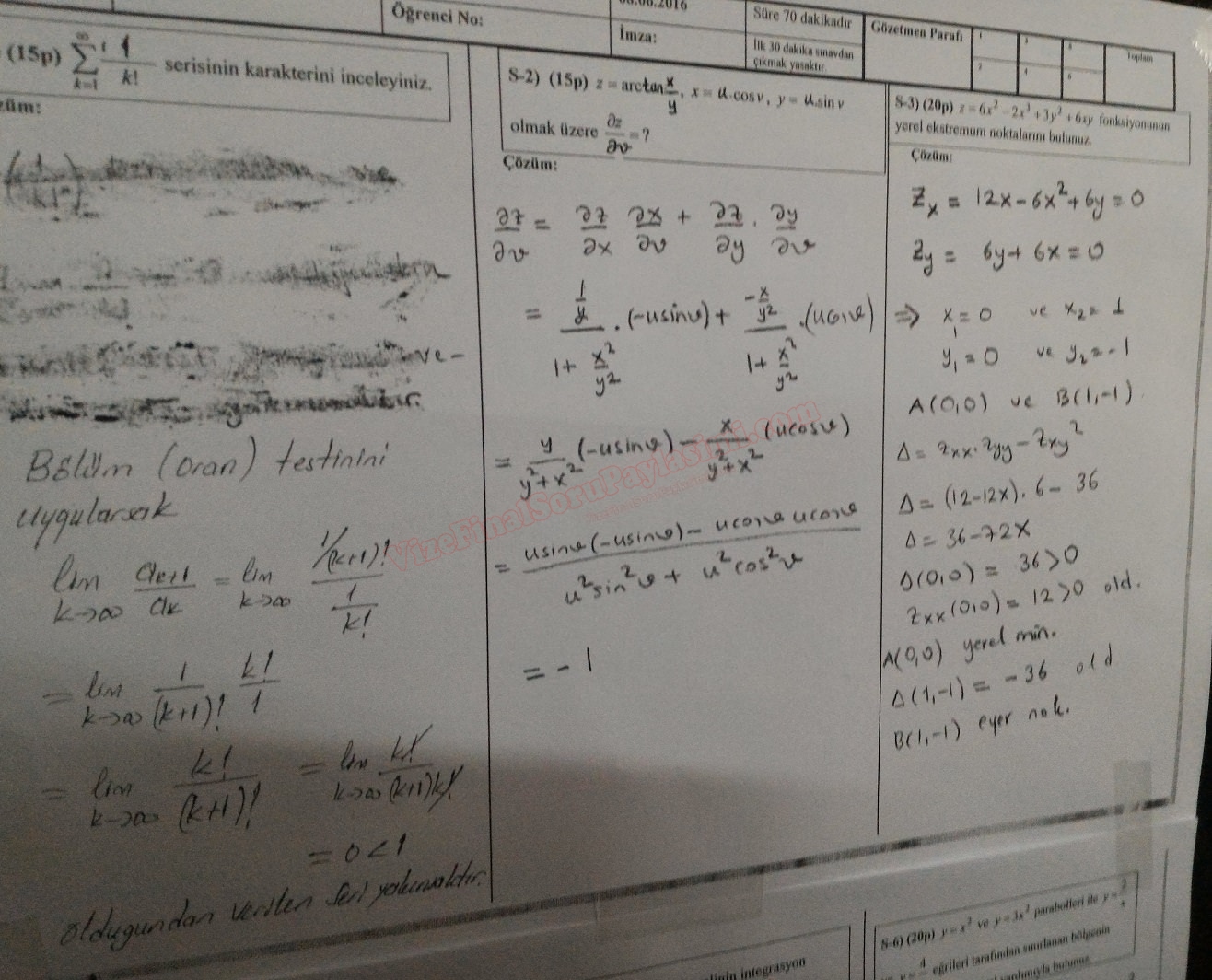 Matematik -2 Bütünleme Soruları ve Cevapları - 2016