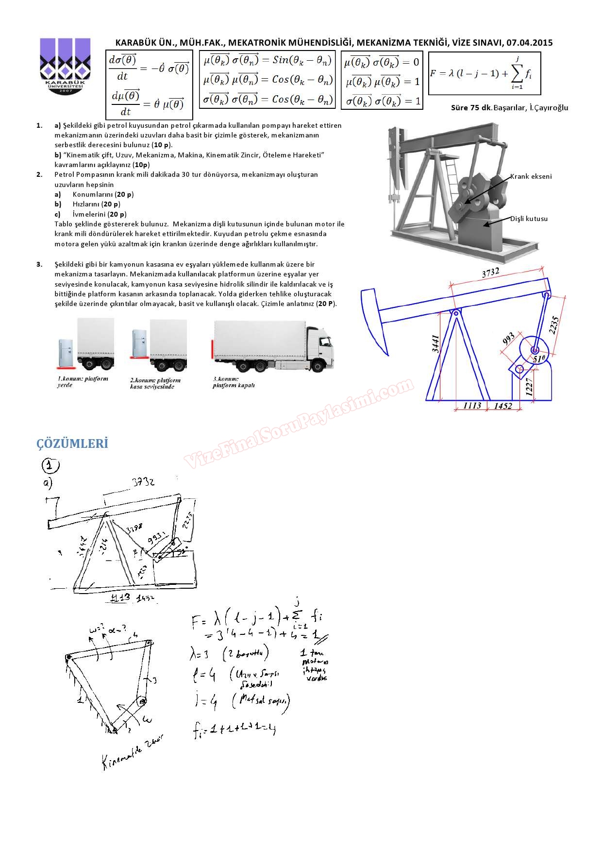 Mekanizma Tekniği Dersi Vize Soruları ve Cevapları 30-05-2015, 19:41