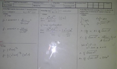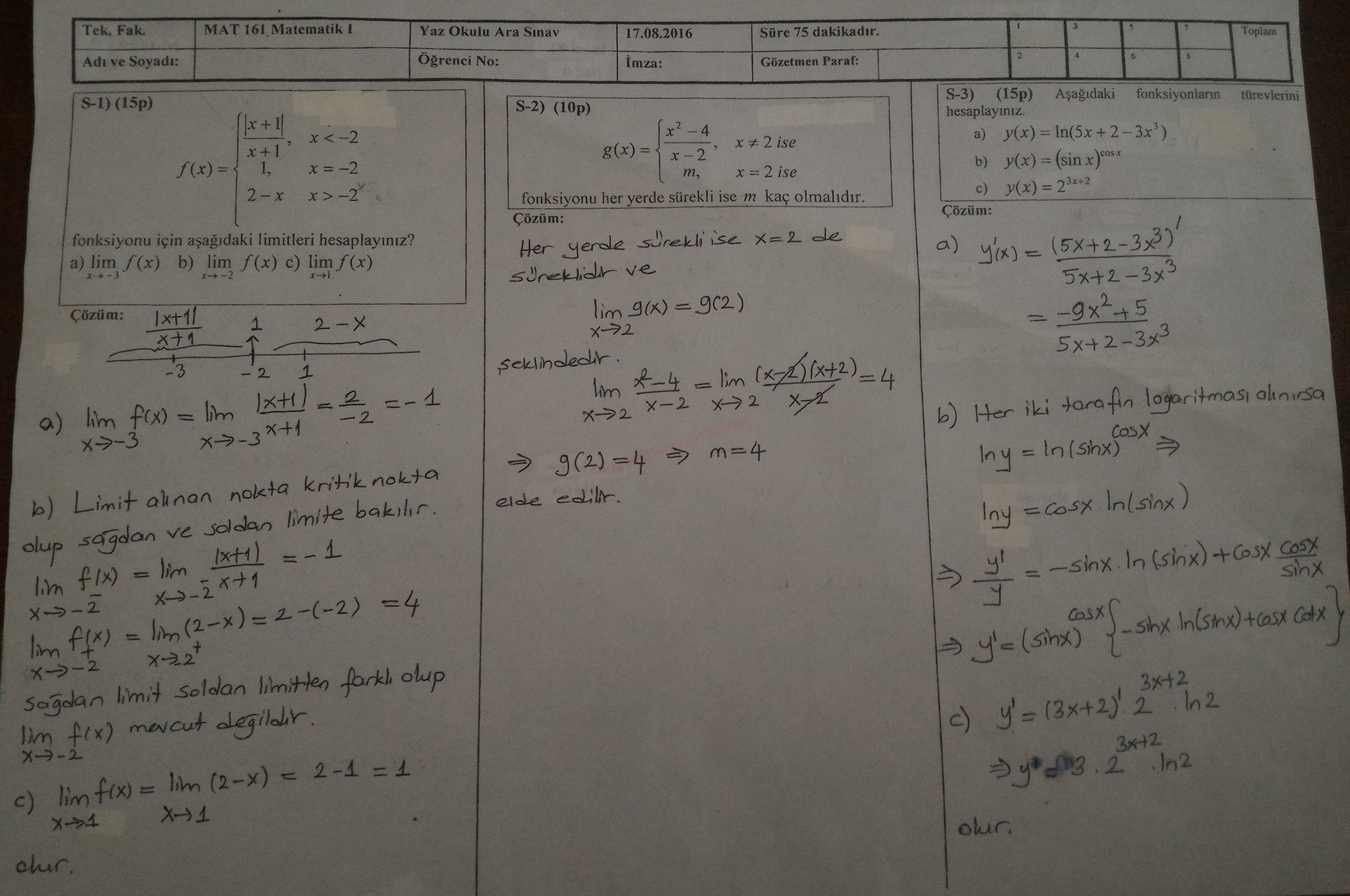 Matematik -1 Vize Soruları Ve Cevapları (Tek. Fakültesi-Yaz Okulu 2016)