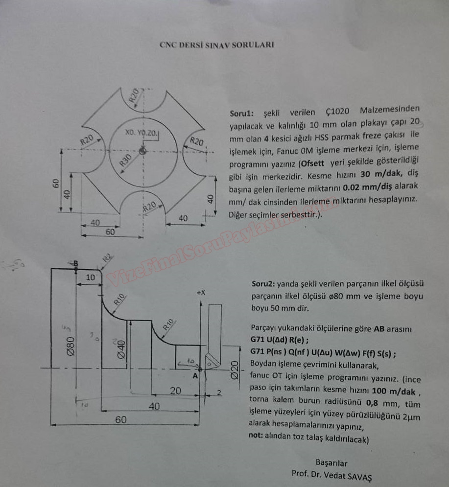 Vize ve Final Soruları / Fırat Üniversitesi / CNC Takım Tezgâhları Dersi