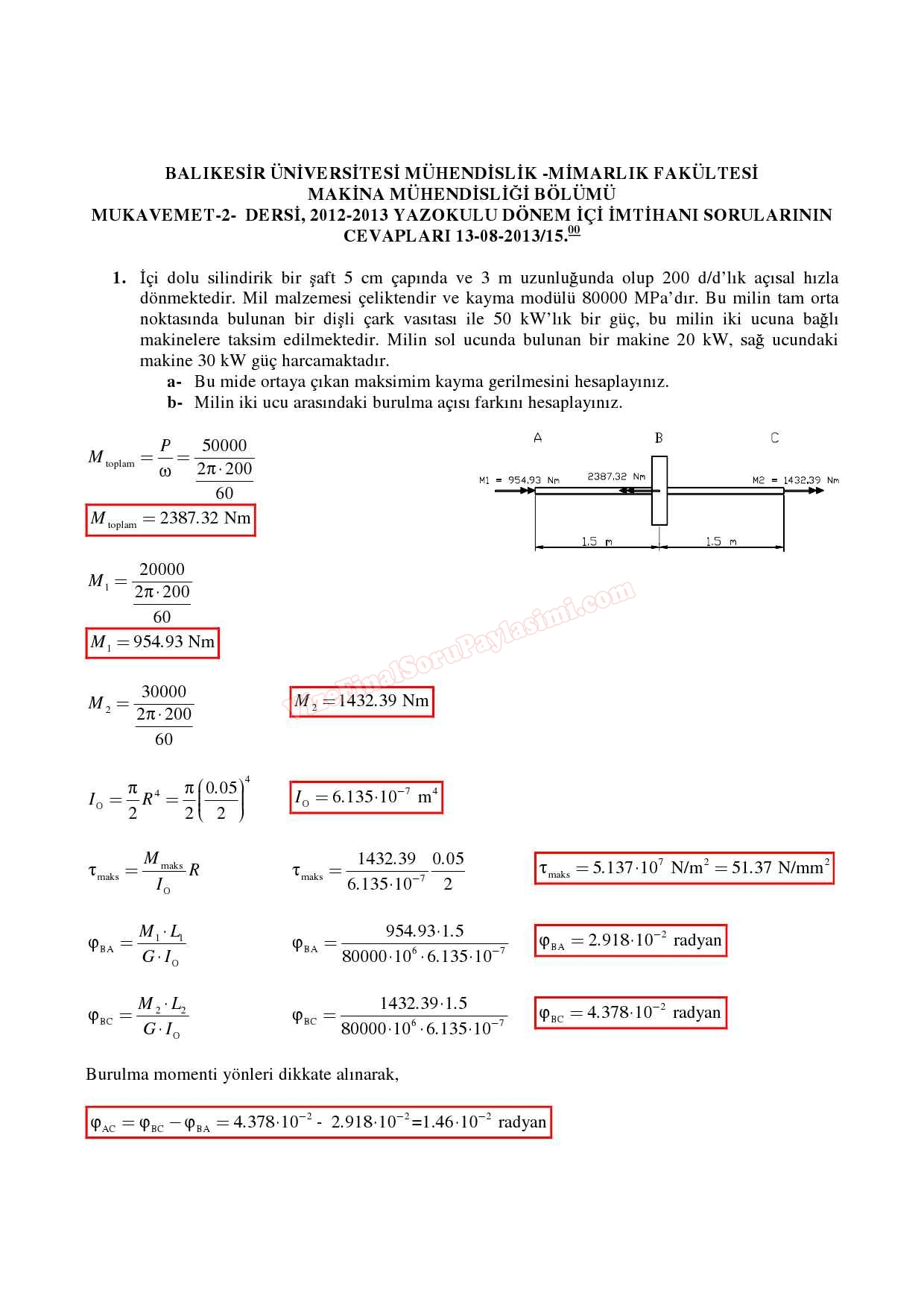 Balıkesir Üniversitesi mukavemet-2 Mukavemet -2 Vize Soruları Çözümleri Cevapları Mimarlık Mühendislik GERİ DÖN-