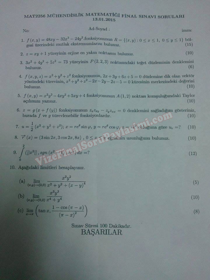 Mühendislik Matematiği Vize Soruları 17-03-2016, 14:01
