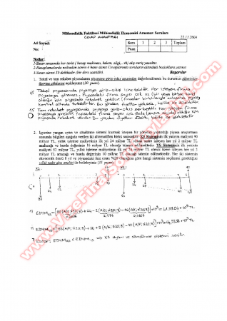 Mühendislik Ekonomisi Vize Soruları -2004 15-05-2015, 00:31