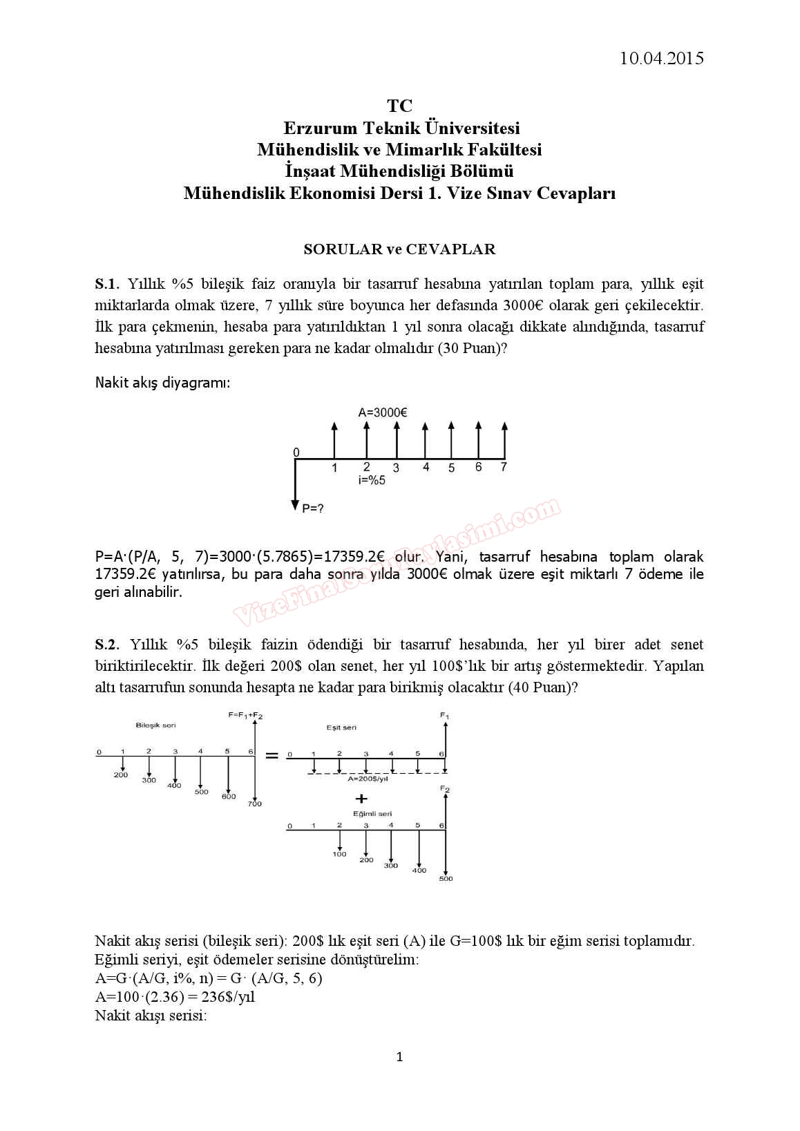 Vize ve Final Soruları / Erzurum Teknik Üniversitesi / Mühendislik Ekonomisi Dersi