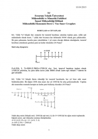 Mühendislik Ekonomisi Dersi 1. Vize Soruları ve Cevapları
