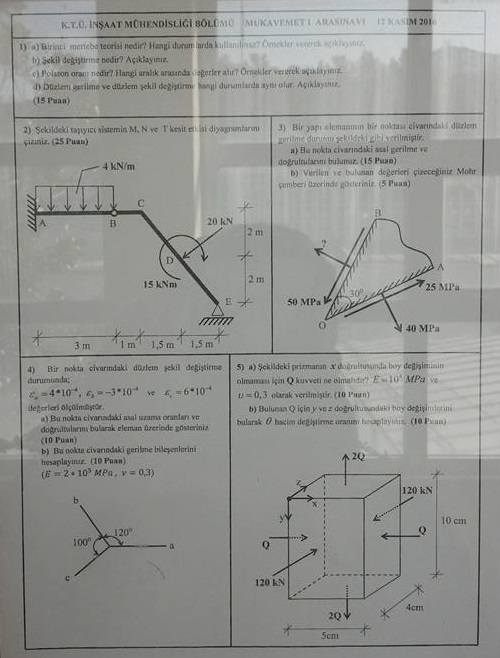 Vize ve Final Soruları / Karadeniz Teknik Üniversitesi / Mukavemet -1