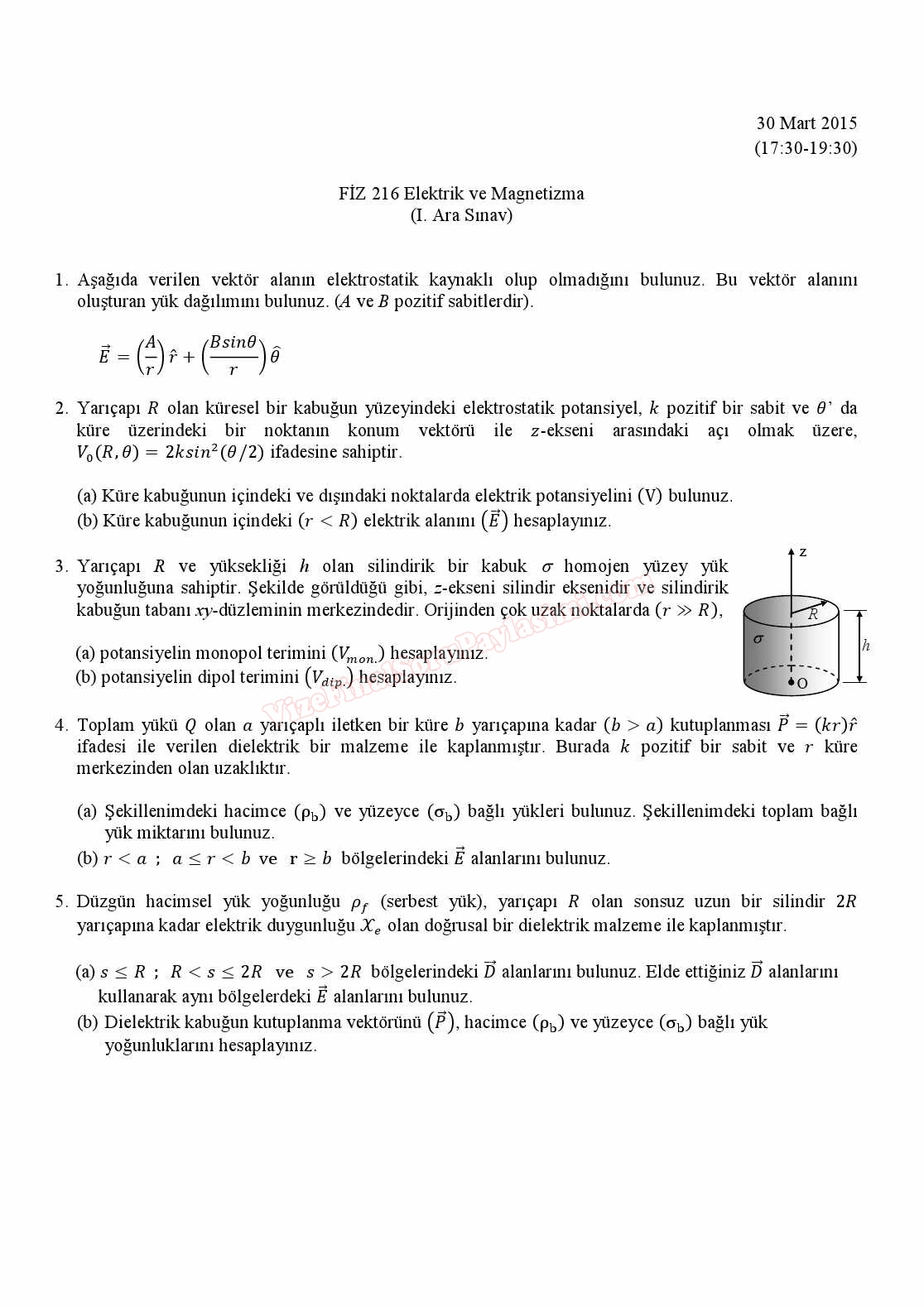 Elektrik Ve Manyetizma 2. Vize Soruları Ve Cevapları -2016 6-12-2016, 02:03