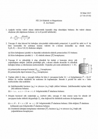 Elektrik ve Manyetizma 2. Vize Soruları ve Cevapları 6-12-2016, 01:54