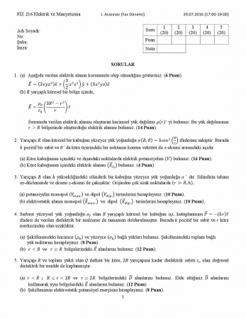 Elektrik ve Manyetizma Vize Soruları ve Cevapları Yaz Okulu 6-12-2016, 02:25