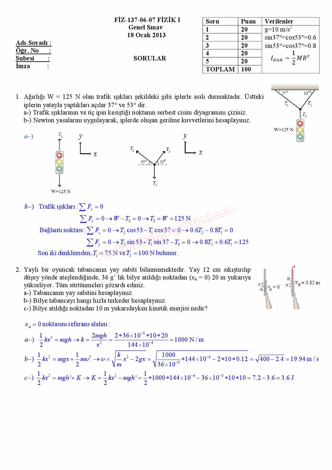 Fizik -1 Final Soruları ve Cevapları -2014 6-12-2016, 02:38