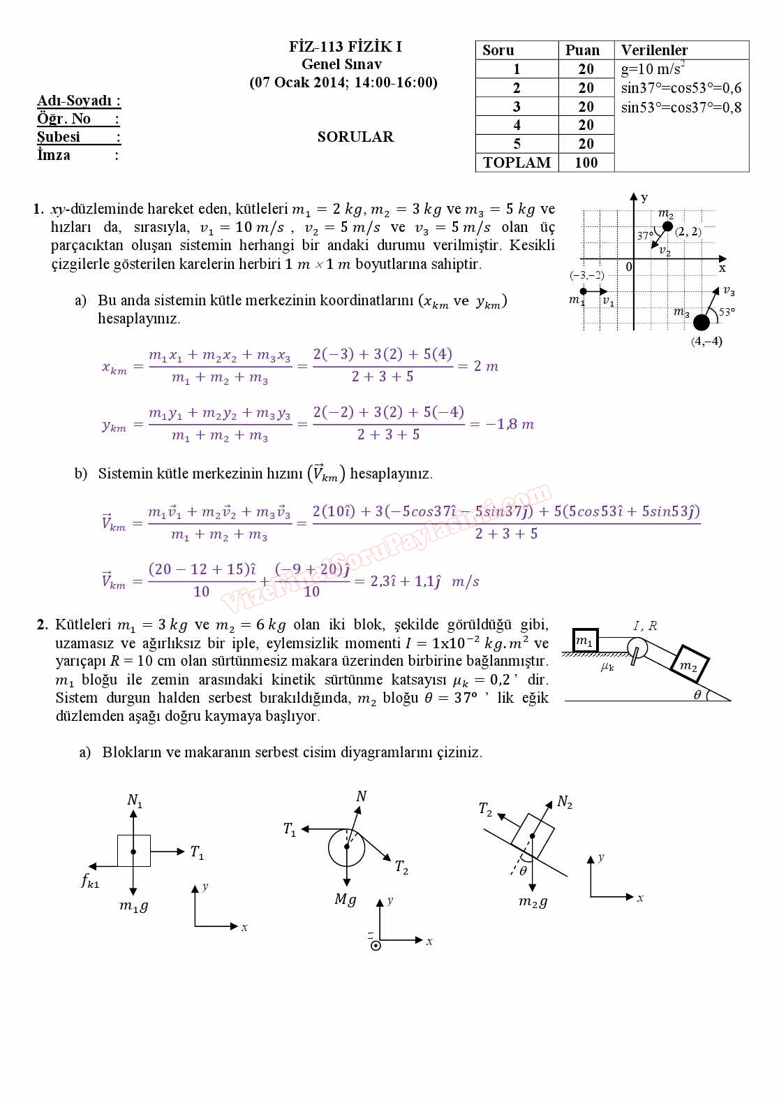 Fizik -1 Final Soruları ve Cevapları -2014
