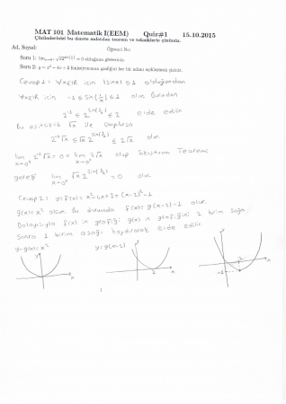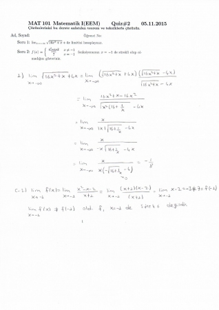 Matematik -1 2. Quiz Soru ve Çözümleri - EEM 17-12-2015, 16:20