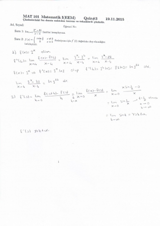 Matematik -1 3. Quiz Soru ve Çözümleri - EEM 17-12-2015, 16:21