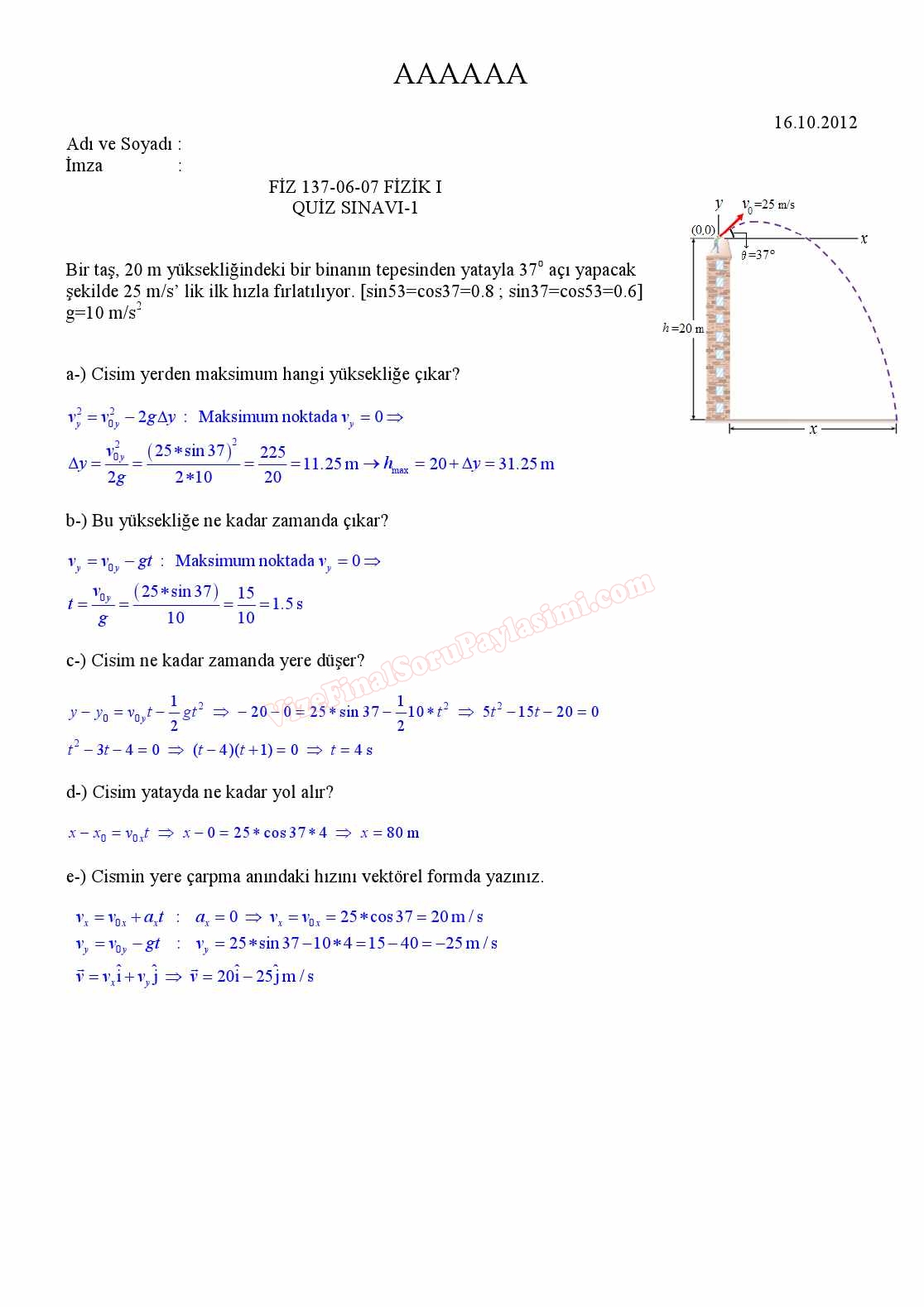 Fizik -1 Quiz Soruları ve Cevapları -2 6-12-2016, 02:48