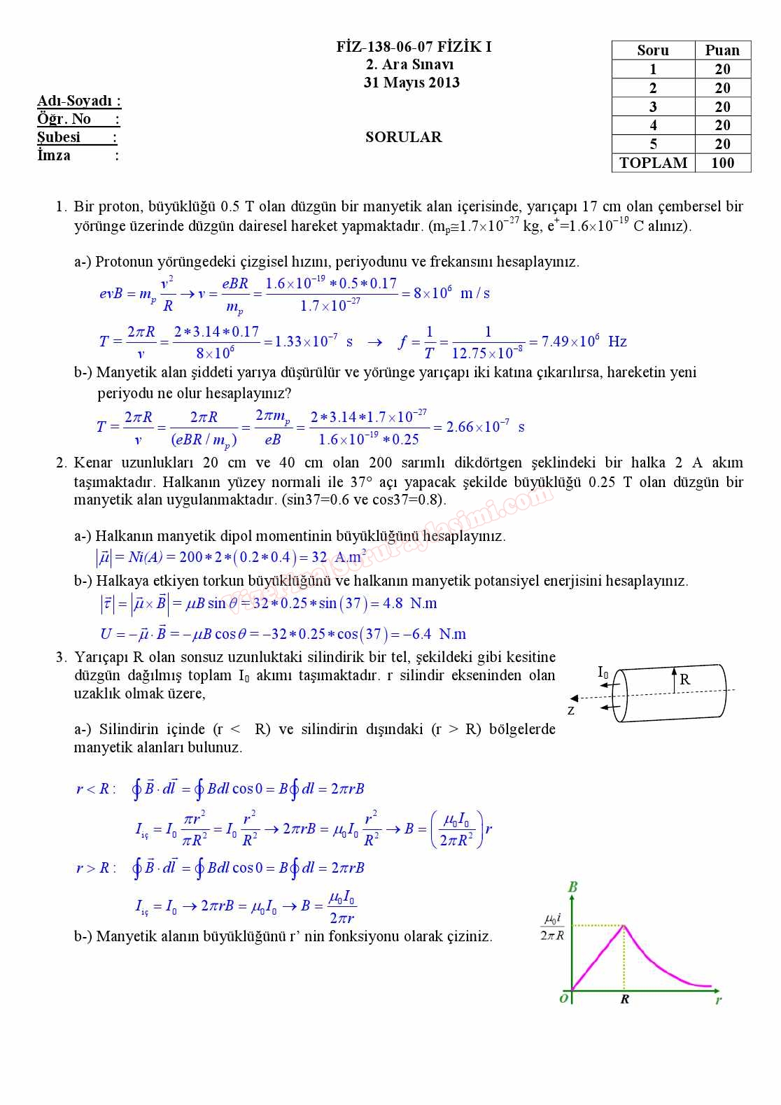 fizik vize2 soruları cevaplari Hacettepe Üniversitesi GERİ DÖN-