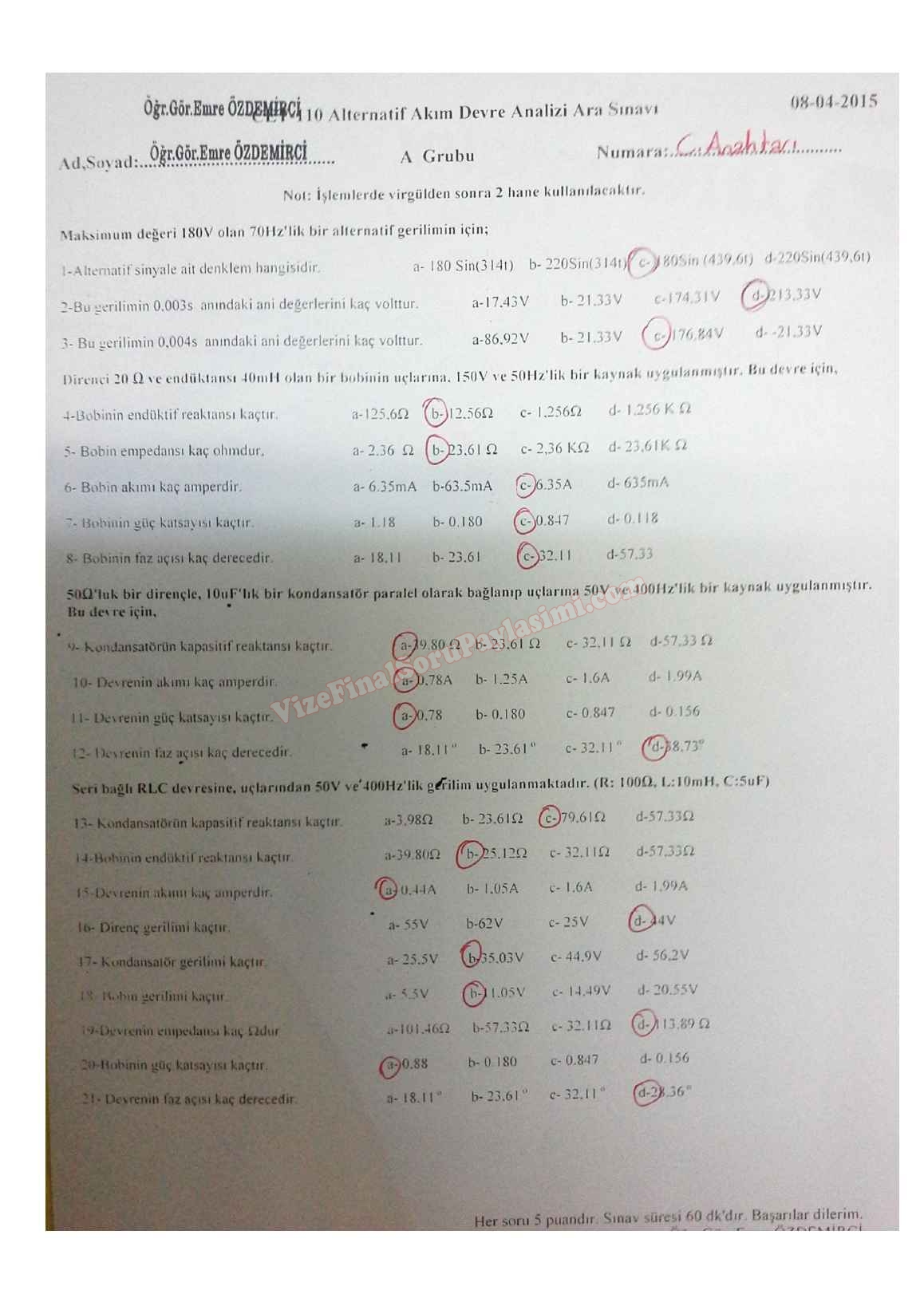 alternatif akim devre analizi vize sorulari cevaplari çankırı karatekin üniversitesi