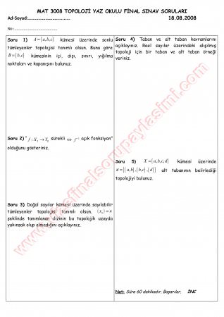 Topoloji-2 Final Soruları Ve Cevapları 23-04-2015, 21:58