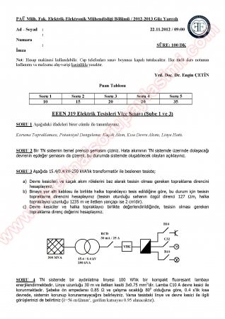 Elektrik Tesislerinin Projelendirilmesi Vize Soruları-2012 2-09-2015, 22:35