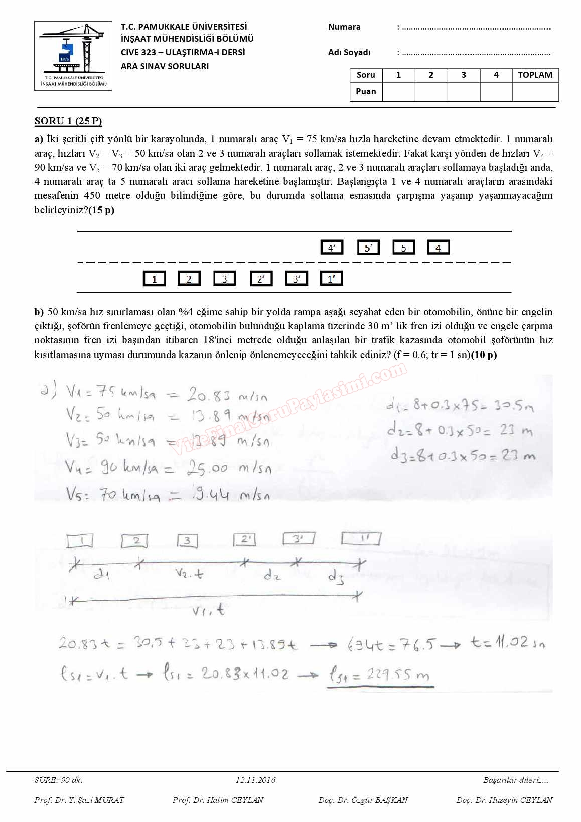 Pamukkale Üniversitesi Ulaştırma 1 dersi vize soruları cevaplari uni pau GERİ DÖN-