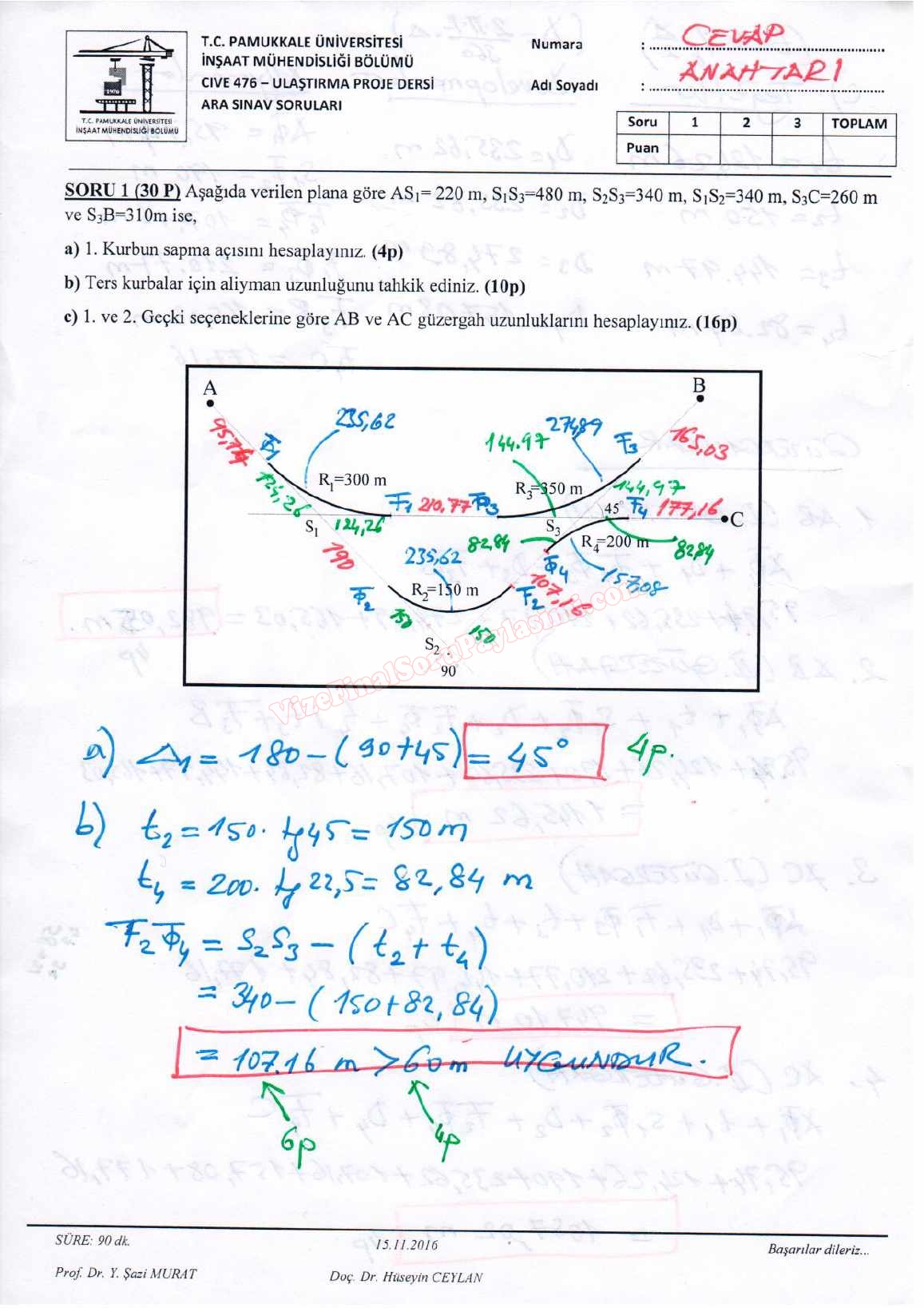 Pamukkale Üniversitesi ulaştırma proje vize sorulari cevaplari pau GERİ DÖN-