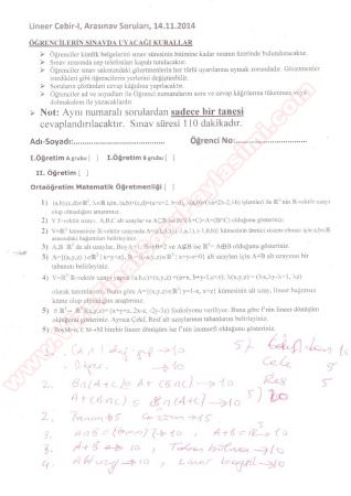 Lineer Cebir -1 Vize Soruları ve Cevapları - 2014 29-05-2015, 23:25